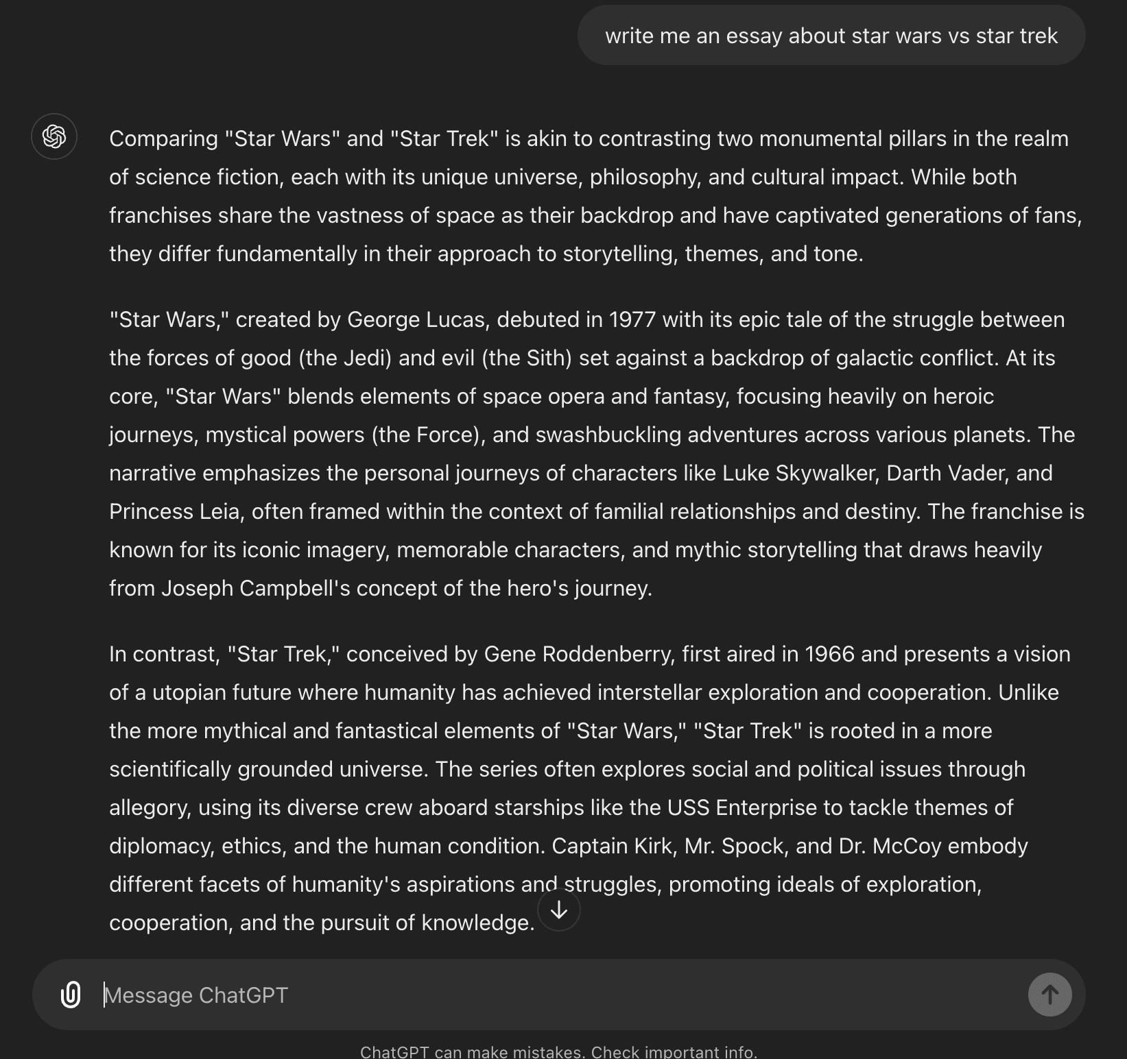 Now that we understand our AI tools, lets put them to use. First, we need to generate an essay with ChatGPT. Here goes nothing: