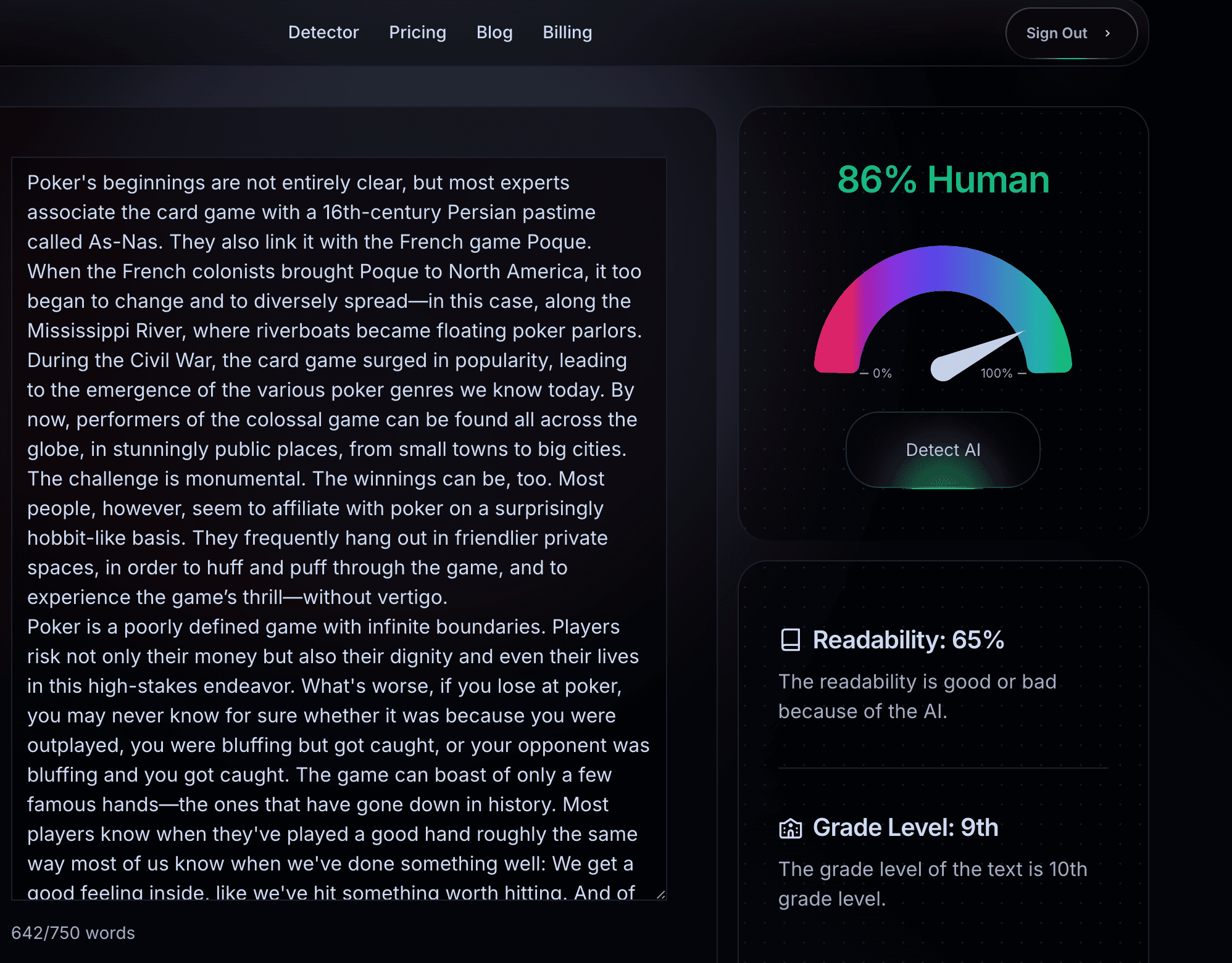 Now we’ve increased our human score to 86% and readability score to 65%.