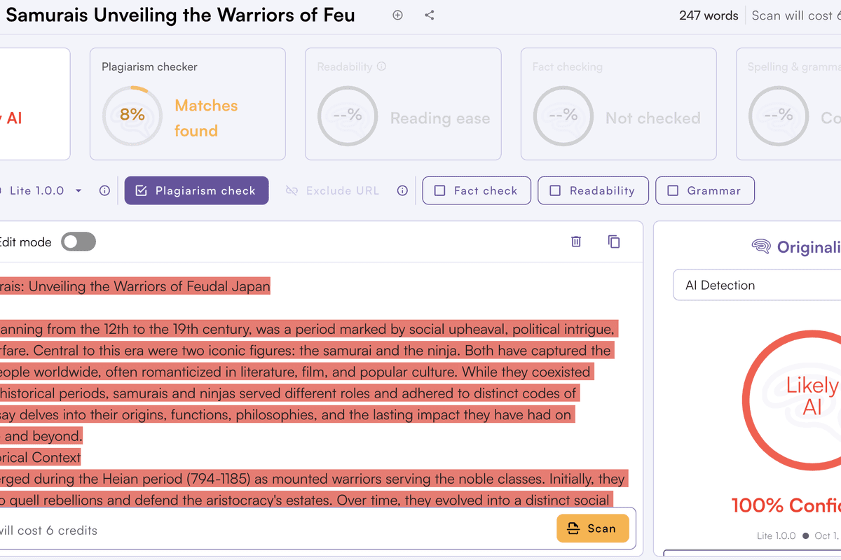 When a professor passes an essay of yours through an AI-content detector, they’re try to determine the originality of your essay. Is it originally yours? Is there plagiarism of any kind, whether traditional or AI plagiarism, present in the text.An AI Originality Checker is another way of saying both an AI detection tool or plagiarism checker. In this article, we’re going to list off some other Detection tools that we found almost as good as AI Detect. Our list is determined by functionality, price, and user-experience. Here’s a spoiler though, the best AI Originality Checker is AI Detect.